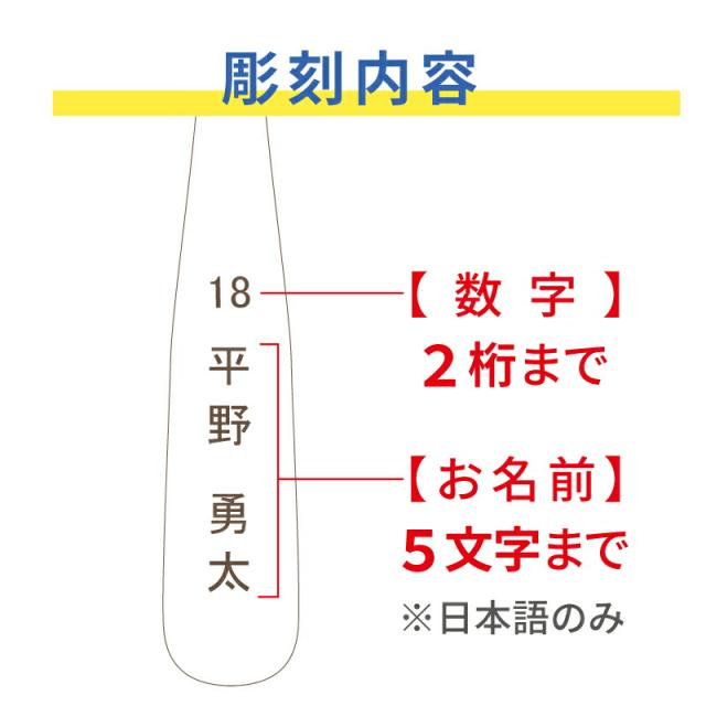 | 名入れについて | 【数字】2桁まで 【お名前】日本語のみ 5文字まで ※複数ご注文の場合、買い物かごに入れた後、 購入手続き「注文確認」画面、ご注文商品の「記入欄」へご記入ください。 |