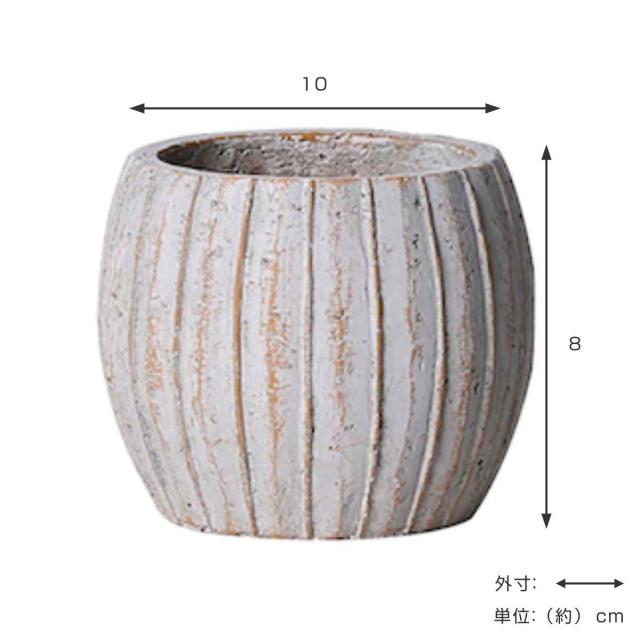 縦線の模様がスッキリとした印象のポットです。アンティーク加工で大人シンプルなデザインで、植物を引き立ててくれます。サボテンや多肉植物、観葉植物、花の苗など、どんな種類の植物にもピッタリです。お手入れ無しで気軽に使える造花を飾るのもオススメです。