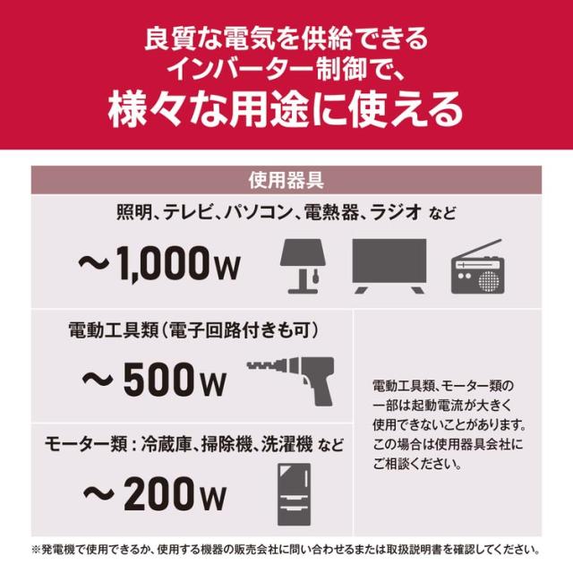 ●小型・軽量で持ち運びが容易ながらも定格出力1000Wです。