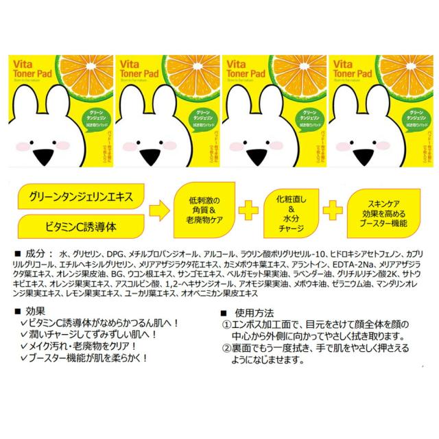 新商品!LuvLabビタトナーパッド(グリーンタンジェリントナーパッド)エッセンシャルオイルの香!Vita Toner Pad 5枚入りすこぶる動くウサギキャラクターの化粧品登場!韓国コスメ/韓国化粧品 すこぶる動くうさぎコスメパック