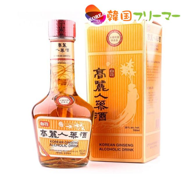 高麗人参酒 4年根人参一本入 (700ml)【1本】お酒 焼酎 韓国焼酎 韓国お酒 お酒 薬酒 健康酒 韓国食品 韓国特産品 Gift用 洋酒 白花 高麗人参酒 700ml 韓国酒類販売 箱入り