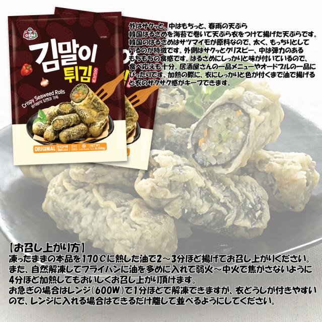 ASSI 春雨 海苔巻き 500g ×3袋 キムマリ サクッと 春雨海苔巻き天 冷凍発送 天ぷら 揚げるだけ 美味しい おかず おやつ 韓国料理 屋台 料理 のりまき キンマリ おつまみ つまみ 海苔まき のり巻き ハルサメ 韓国風春雨