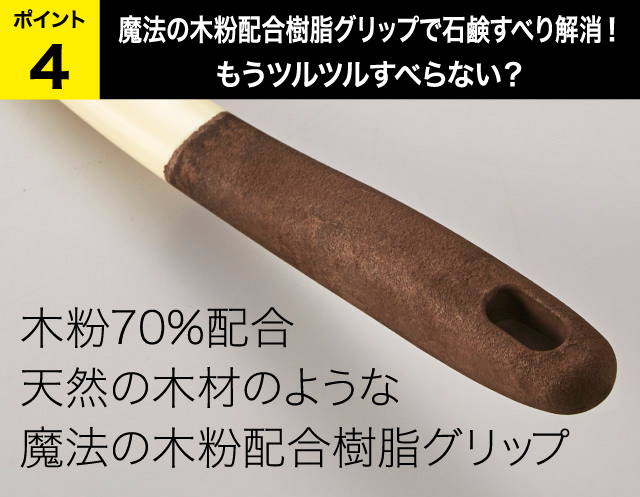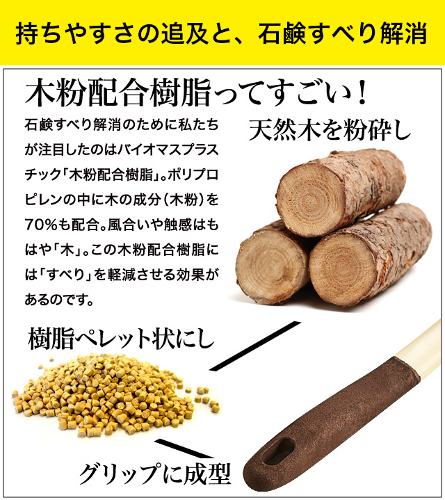 | タフトブラシ:PBT、植毛ブラシ:アクリル、本体:スチロール樹脂、ブリップ部、木粉配合樹脂 |