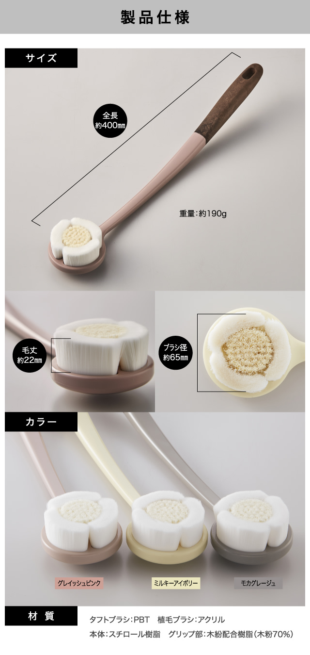 日本製 ボディブラシ 背中 やわらか ボディケアブラシ