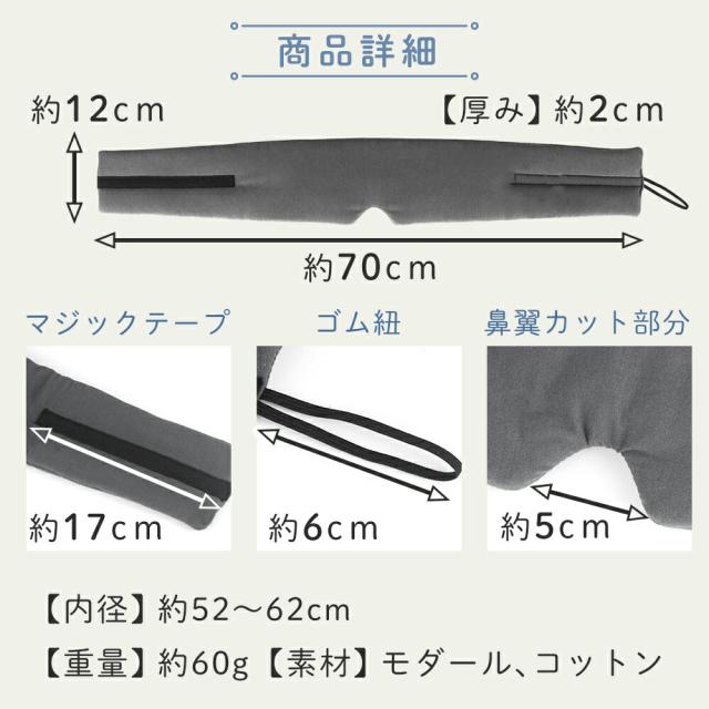 アイマスク/モダール/遮光/ふわふわ/コットン/就寝/睡眠/おやすみ/アイピロー/スリープマスク/リラックス/疲れ目/眼精疲労/温め/温感/あったか/ホット/目元ケア/在宅/オフィス/移動/仮眠/快眠/健康/旅行/海外旅行/長距離バス/国内旅行/飛行機/サイズ調整/レディース/メンズ/持ち運び/プレゼント/目隠し/なめらか/気持ちいい/もちもち/癒やし/男女兼用/ゴム紐/洗濯可/シンプル/グレー/ダークグレー/ブラック