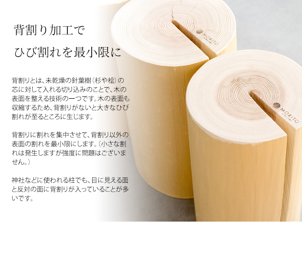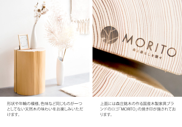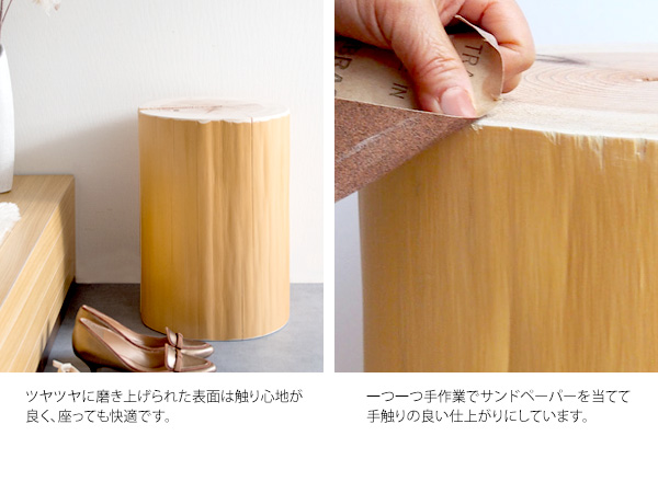 | 説明 | 吉野の豊かな森から間伐された杉を、奈良の冬の伝統工芸磨き丸太に仕上げた多目的丸太スツール『Cierva(シエルバ)』。 座りやすい高さでダイニングや玄関、カウンターでのスツールとしてお使いいただけます。ソファやベッドサイドに置いてサイドテーブル使いもオススメです。 美しい年輪と色合いは置くだけで高級感のある雰囲気を演出。吉野杉ならではの香りや、ツヤツヤに磨かれた手触りはお部屋に彩りと安らぎを与えてくれます。 |