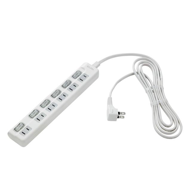 エルパ ELPA スイッチ付タップ 6個口 2m ホワイト WLS-LU62EB(W)