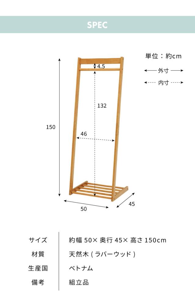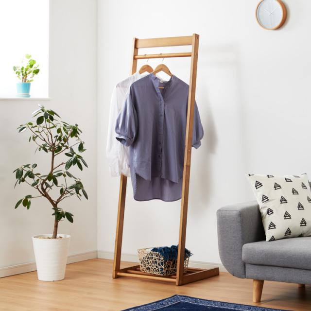 ハンガーラック 幅50cm 木製 天然木 スリム 省スペース おしゃれ L型 高さ150cm コンパクト コートハンガー 北欧 ナチュラル(代引不可)【送料無料】