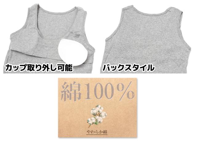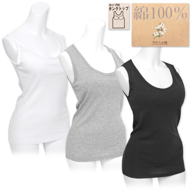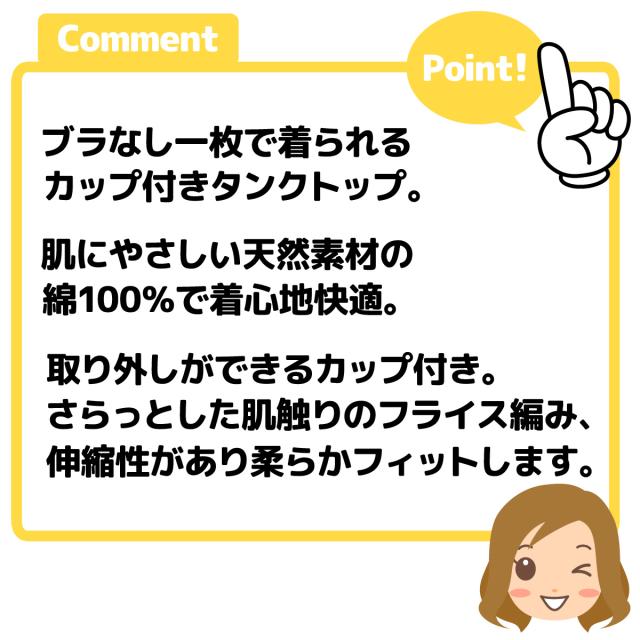 【送料無料】レディース 婦人 綿100% カップ付 タンクトップ 肌に優しい天然素材 さらっとした肌触り カップ取り外し可能 フライス編み 伸縮性 肌着 下着 インナー M L LL yg-1077【メール便対応】