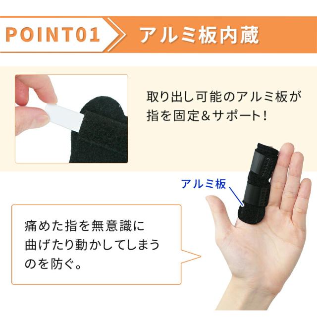 指先サポーター/指サポーター/サポーター/指/サポート/指固定/指関節/突き指/ばね指/腱鞘炎/骨折/親指/人差し指/中指/薬指/小指/スポーツ/デスクワーク/家事/左右兼用/男女兼用/フリーサイズ/金属プレート内蔵/アルミ板/ブラック