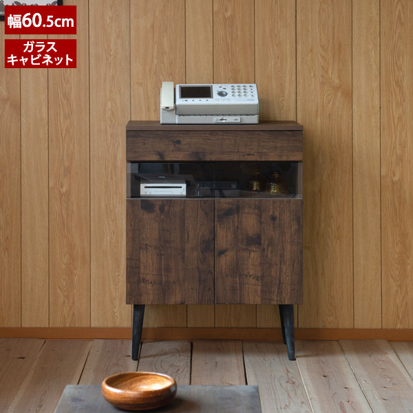 ガラスキャビネット 幅60.5cm ヴィンテージ風家具 ARIZONA ルーター収納FAX台 リビング収納 FY-0096-NS