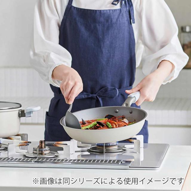 大きすぎず小さすぎないサイズなので汎用性があり、2〜3人分の炒め物などの調理に使いやすい普段使いに便利なサイズです。軽量で扱いやすく、熱伝導率に優れたアルミニウム合金なので、きれいにムラなく調理することができます。