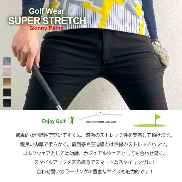 ゴルフパンツ メンズ 秋新作 強ストレッチ ゴルフウェア チノパン 細身 美脚 スリムパンツ メンズファッション スポーツウェア ゴルフ用品 スポーツ