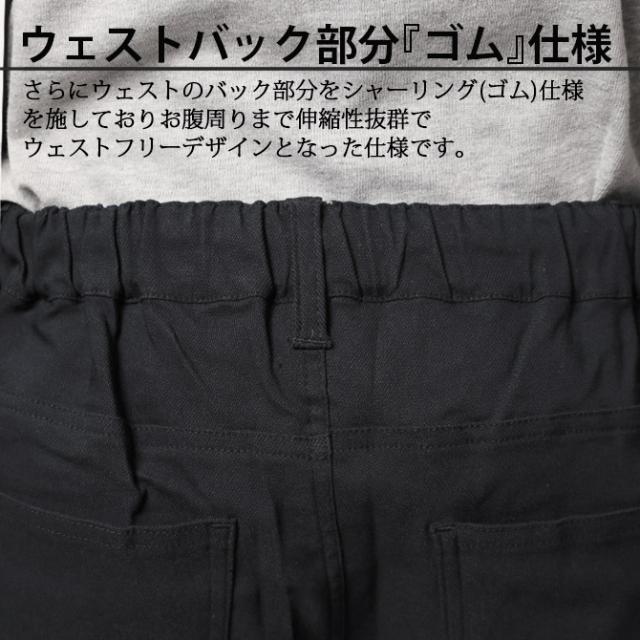 ウェスト部分もバックシャーリングゴムで伸縮しフリーで快適に着用。