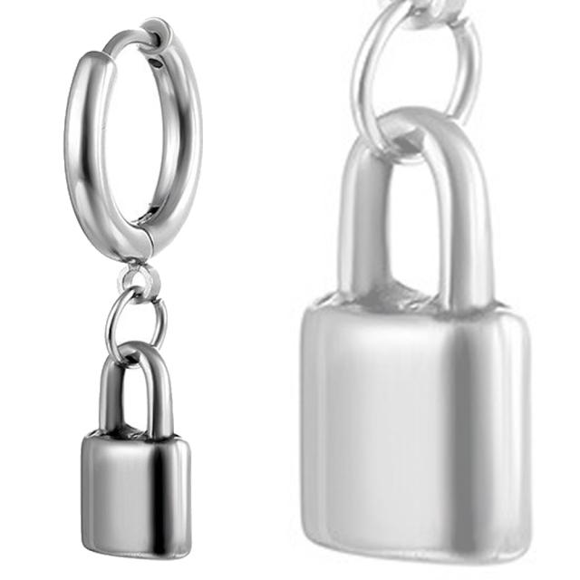 リアルなキーロックのチャームは遊び心のある面白いステンピアス。