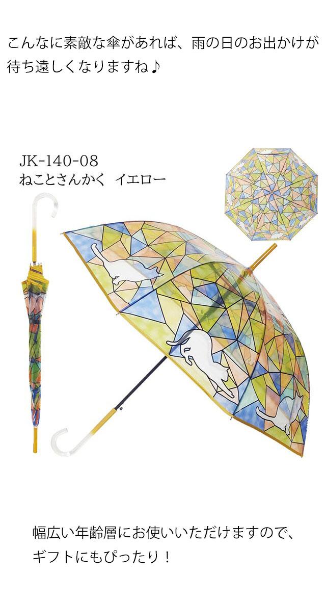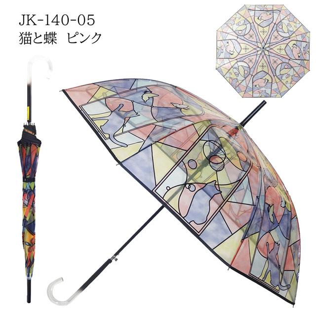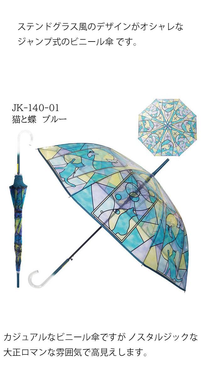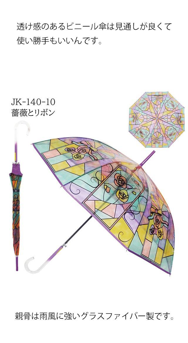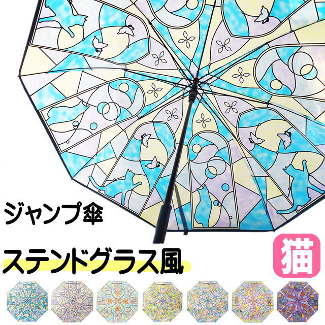 傘 猫柄 レディース かわいい おしゃれ ビニール傘 ステンドグラス風 大正ロマン ジャンプ傘 ワンタッチ傘 雨傘 長傘 薔薇 猫柄