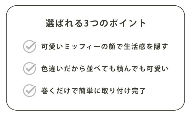 大人可愛いミッフィーの顔がプリントされた「Dick Bruna」シリーズのトイレットペーパーカバーです。巻き付けるだけで生活感を隠してくれるので、予備のトイレットペーパーをそのままトイレに置きたくない方にぴったりです。