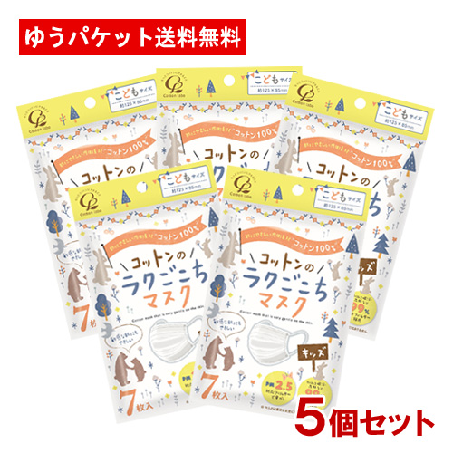 5個セット コットンのラクごこちマスク キッズサイズ 7枚入 コットン・ラボ(Cotton labo)【メール便送料込】