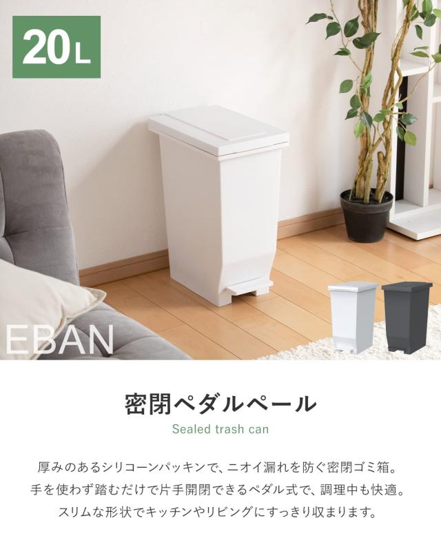 ゴミ箱 20L 密閉ペダルペール エバン ( ごみ箱 20リットル ニオイ漏れ 防止 密閉 スリム シンプル 分別 ペダル式 パッキン EBAN 袋止め付き 踏みふた ペダル 臭わない 生ごみ 縦型 オムツペール キッチン ふた付き )
