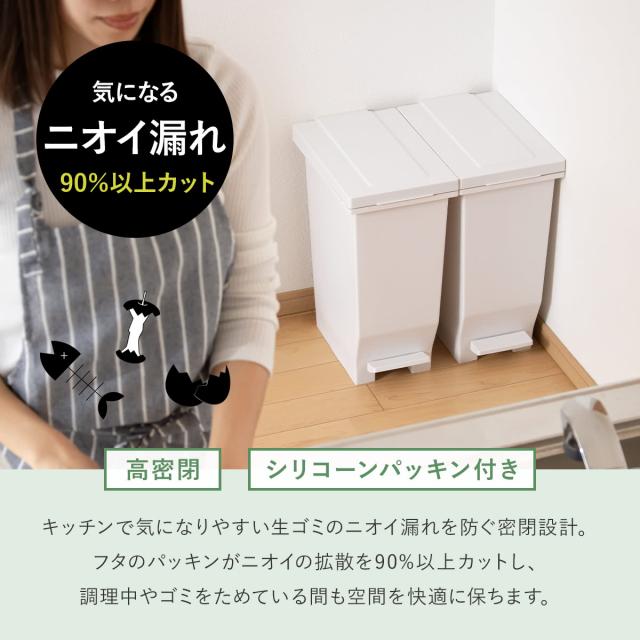 パッキン付きで高い密閉性、ペダル式ゴミ箱20L、同色2個セット