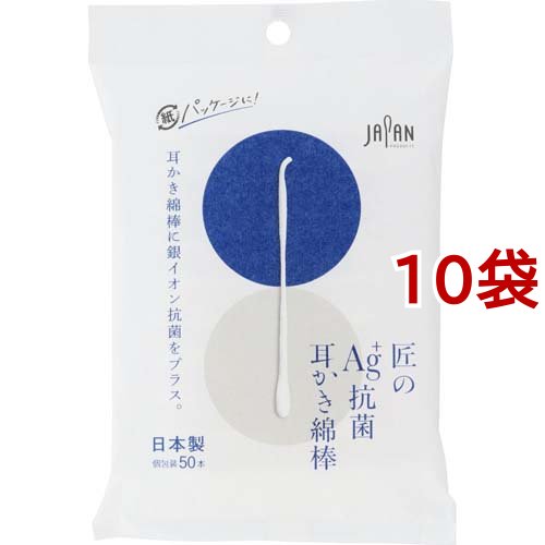 匠の Ag+抗菌 耳かき綿棒(50本入*10袋セット)[ケース入り綿棒]