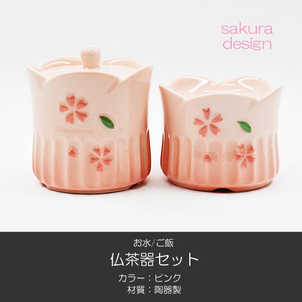 仏器 茶器セット 054 ピンク さくら模様入り せともの 陶器製 創価学会用仏具 ご飯入れ お水入れ 茶碗 仏茶器 SGI SOKA