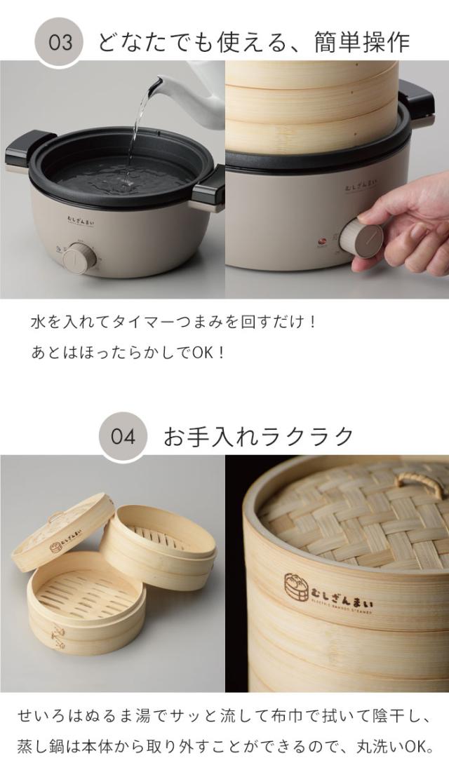 多くの電気蒸し器とは異なり、「蒸気を適度に吸い込み過湿しない」「器としても食卓に彩り、見た目にも美味しい」本格的な蒸し器を実現しました。