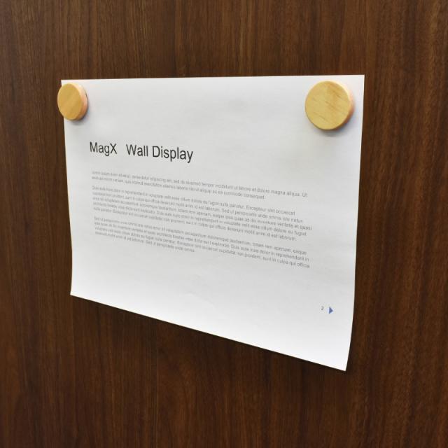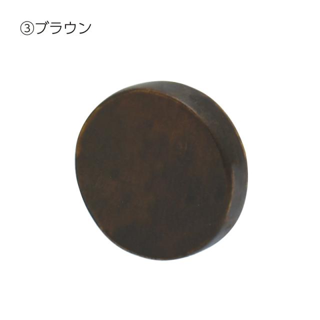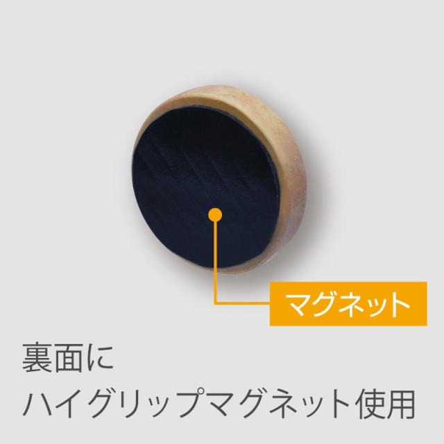手でつかみやすいサイズの丸型マグネットメモ留め。1パック2個入り。サイズ(1個):直径34×奥行9mm 1パック2個入り重さ(1個):10g目安保持枚数(1個):A4用紙約4枚(※磁石がつく壁装材『ピタバンSSタイプ』に吸着させた場合の目安保持枚数です。参考値であり、保証値ではありません。また、『ピタバンBSS』時は使用する壁紙の厚みにより目安保持枚数が変わります)※一点一点手作りなので、サイズや色味・木目等は個体差があります。予めご了承ください。