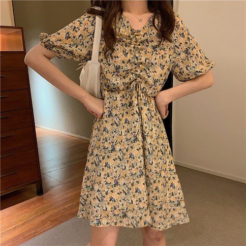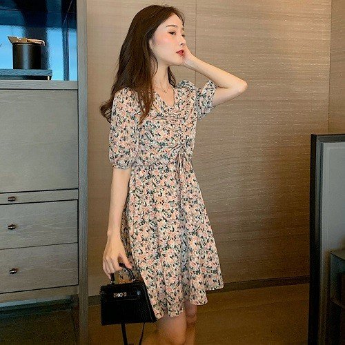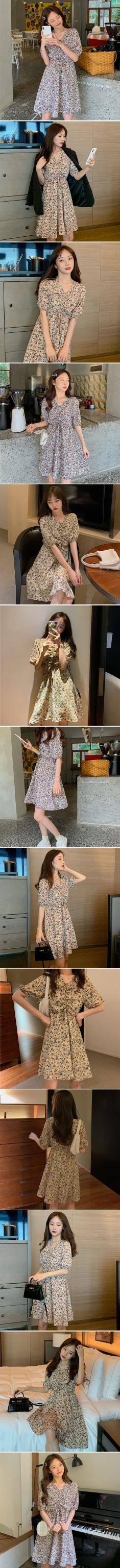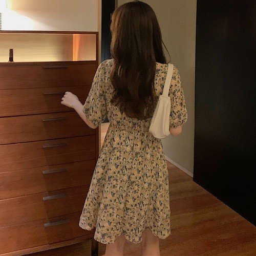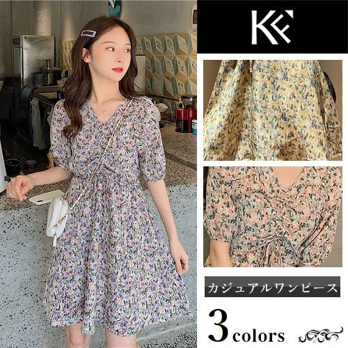 ワンピース レディース 40代 きれいめ 50代 30代 上品 ドレス Vネック 花柄 シャーリング