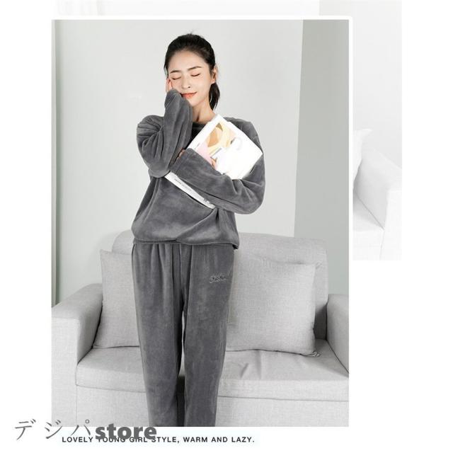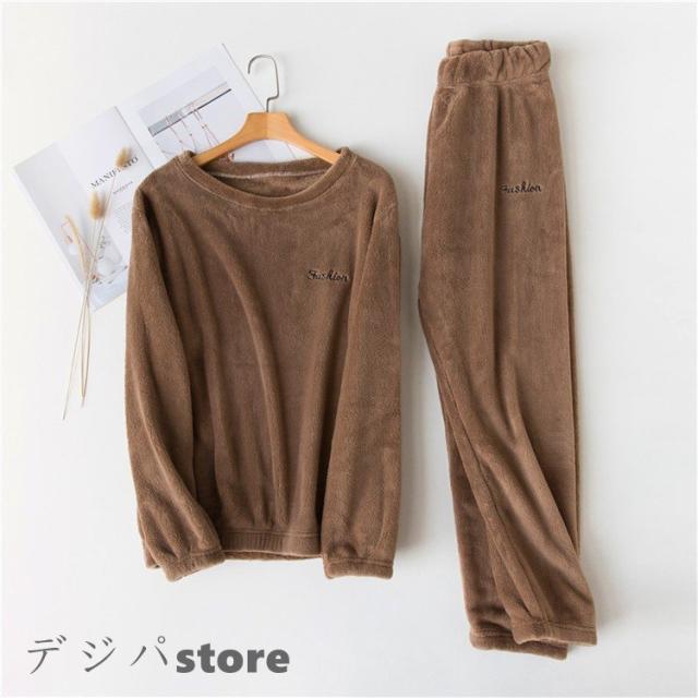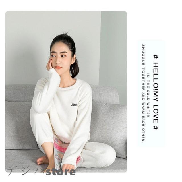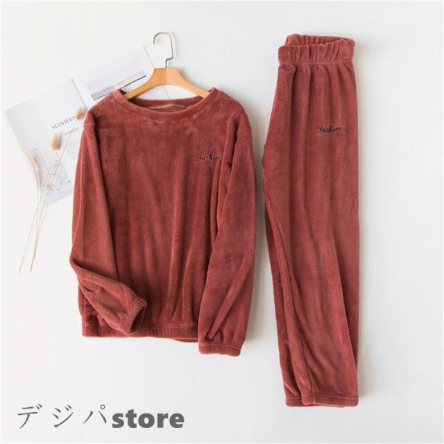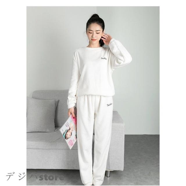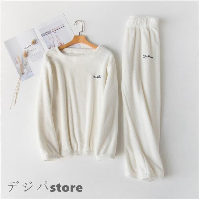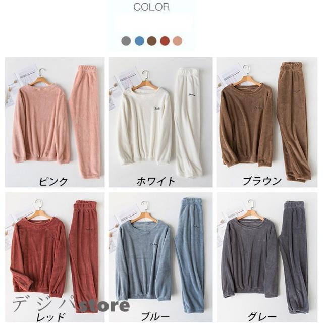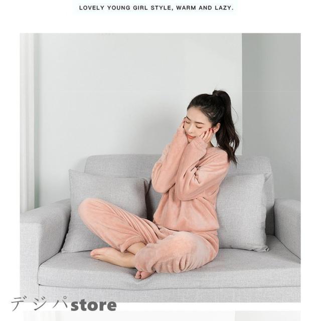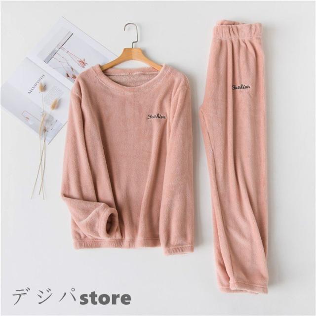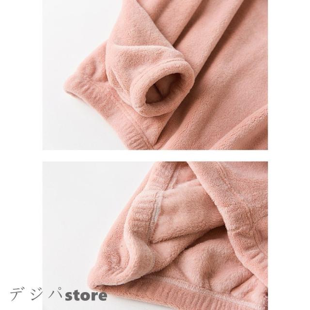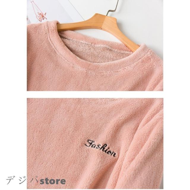 レディース モコモコ パジャマ 上下セット 長袖 秋冬パジャマ ルームウェア ナイトウェア 女性モコモコ かわいい グリーン ピンク 部屋着 婦人服 寝巻き