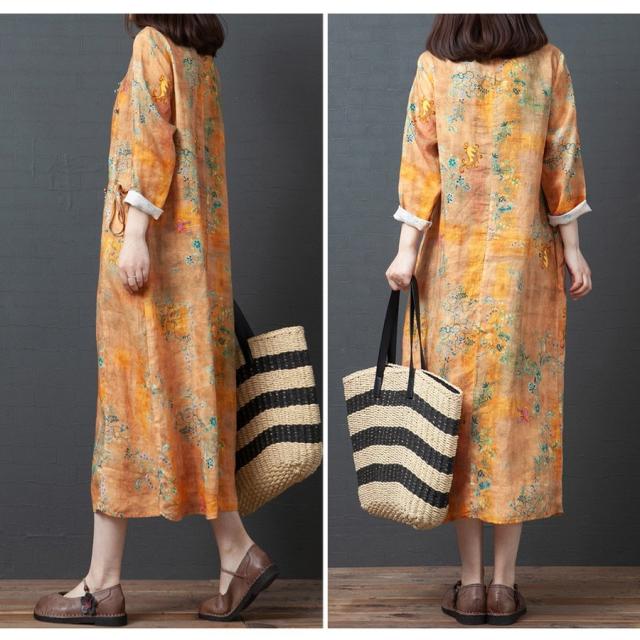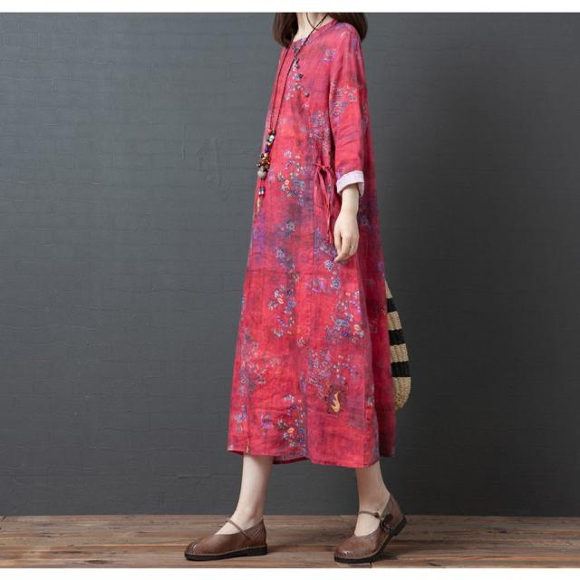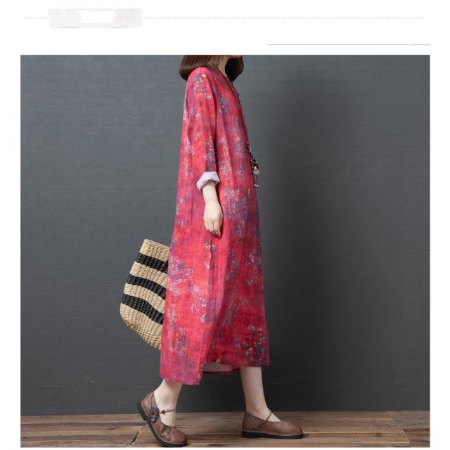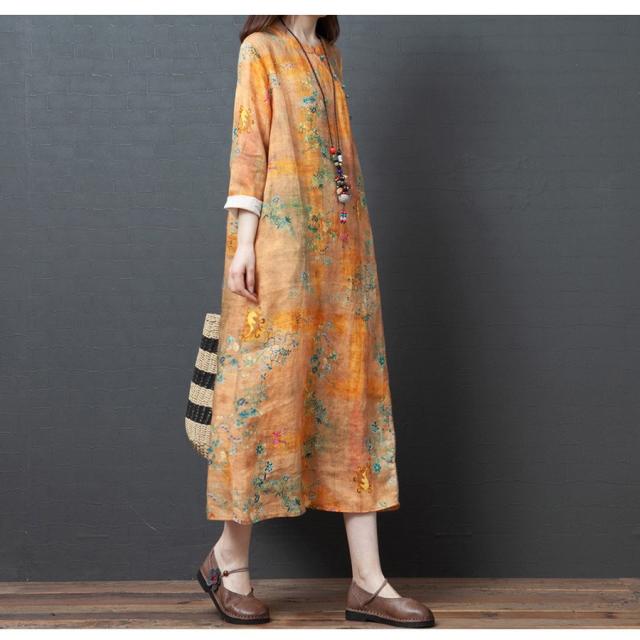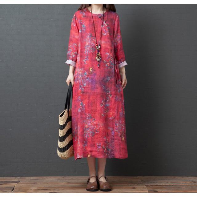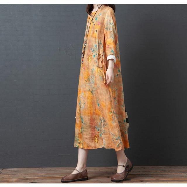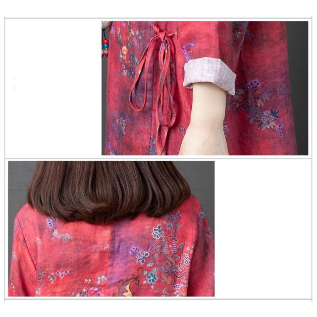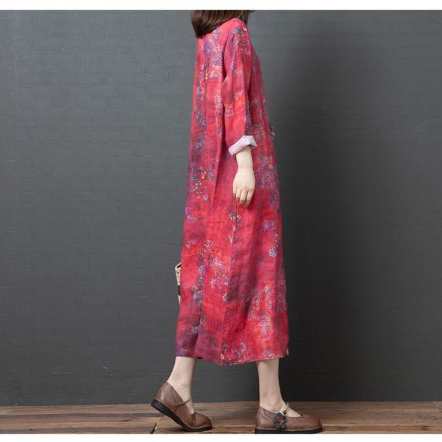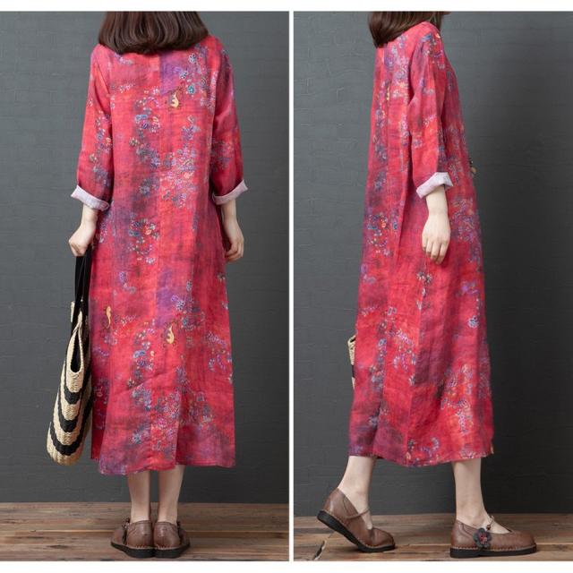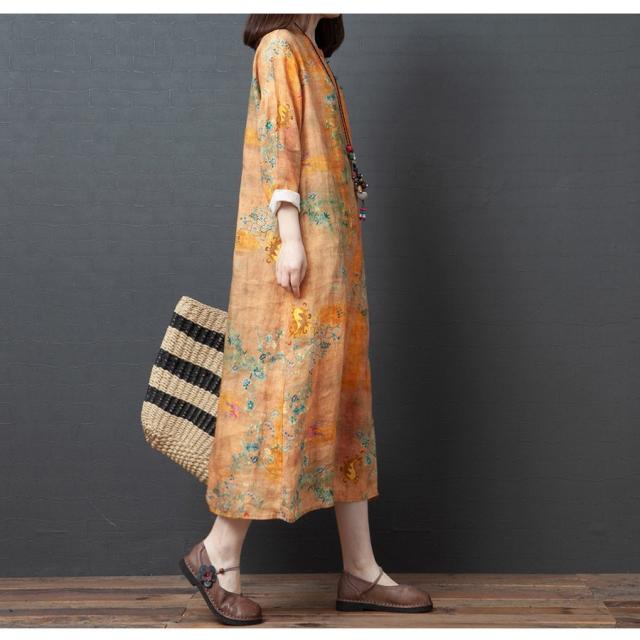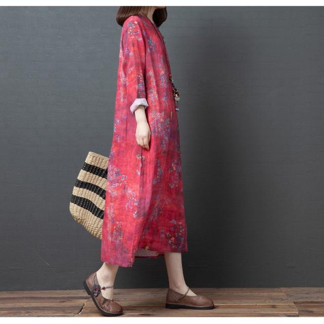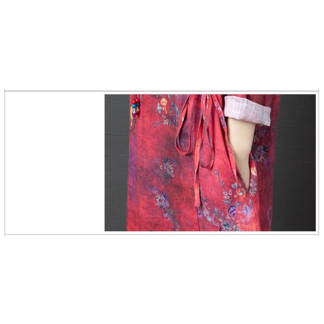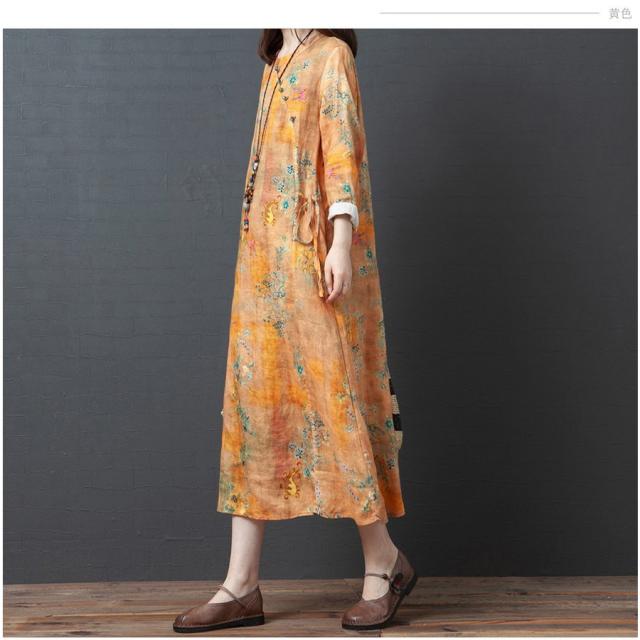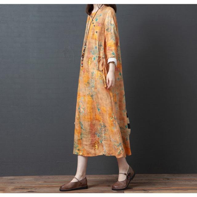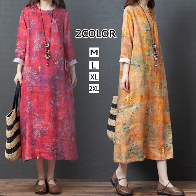 シャツワンピース綿麻混プリントaライン長袖ワンピースレディースチュニック着痩せロングシャツ春コーデ秋ワンピゆったりロングシャツ 40代 夏 春 秋