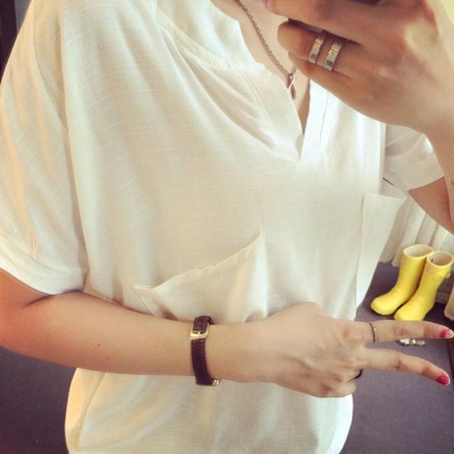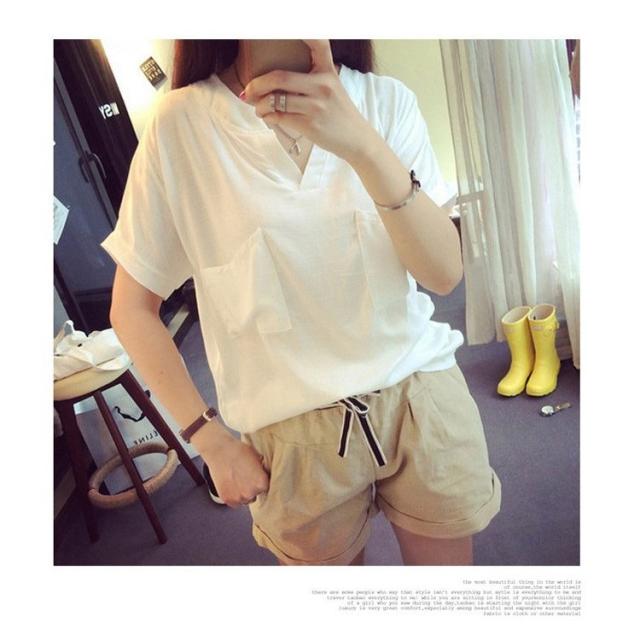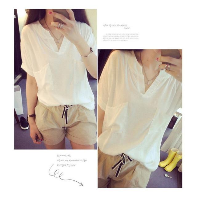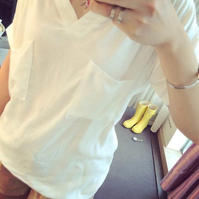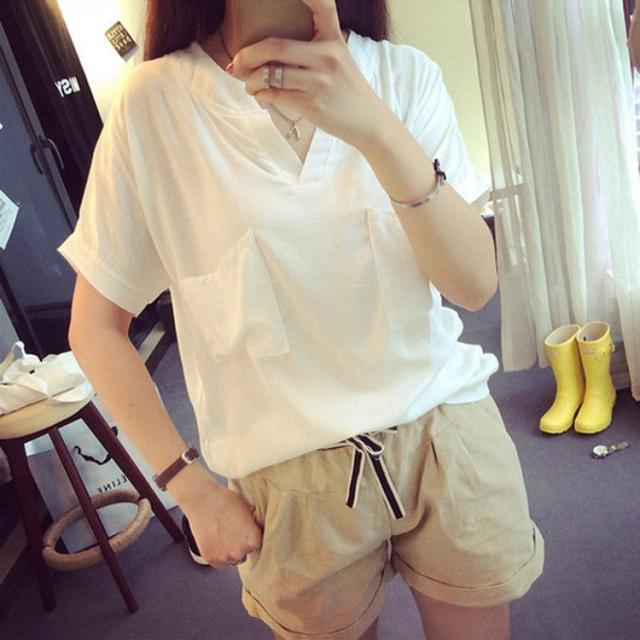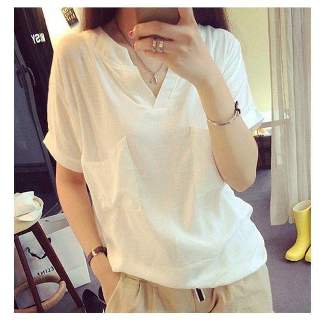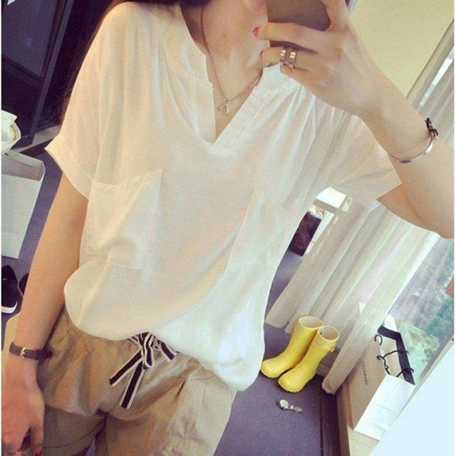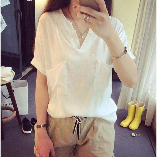 ブラウス レディース 春夏 半袖ブラウス 白ブラウス vネックトップス 綿麻ブラウス Tシャツ おしゃれ 韓国風 カジュアル 通勤 ブラウス 着痩せ