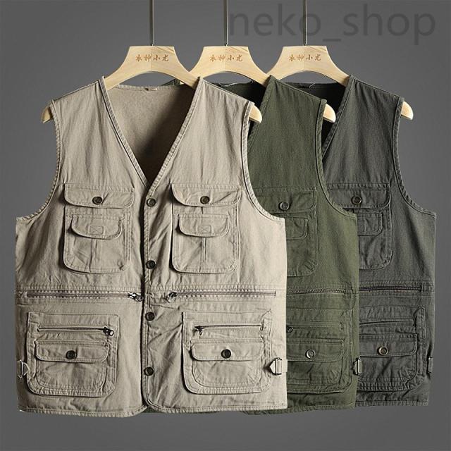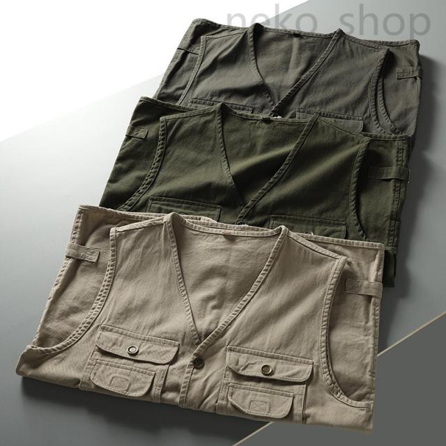 3color ベスト メンズ チョッキ 前開き ジレベスト ワークベスト お洒落 アウター ノースリーブ ゆったり トップス お釣りベスト アウトドア 大きいサイズ 春夏