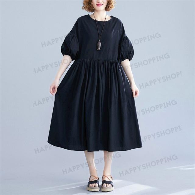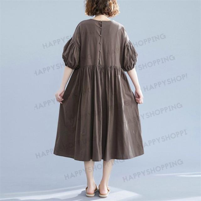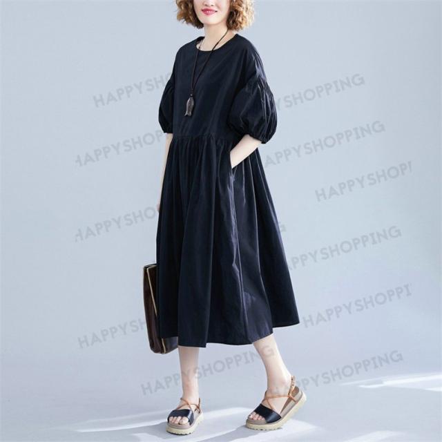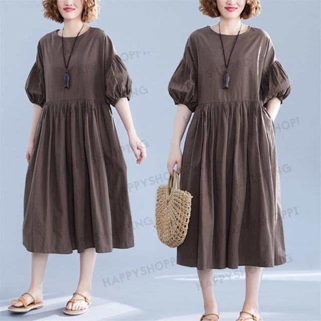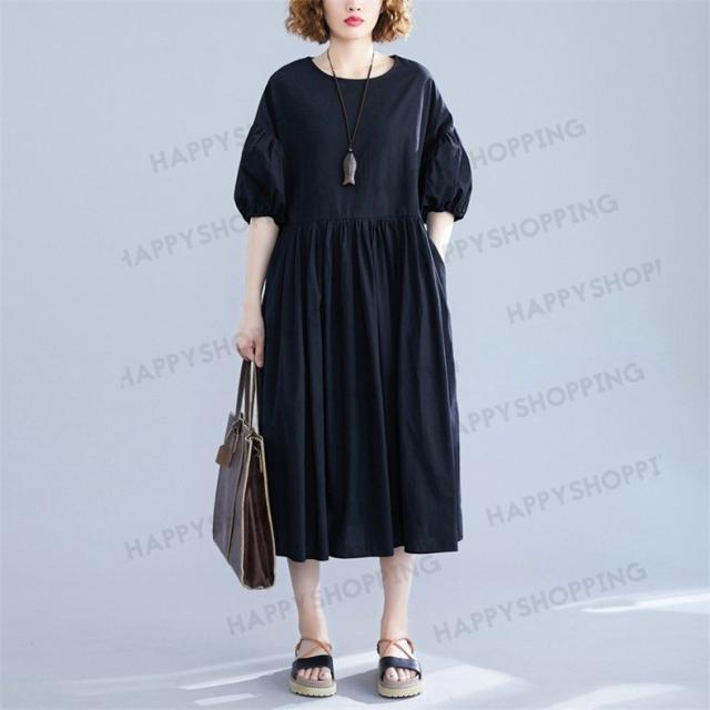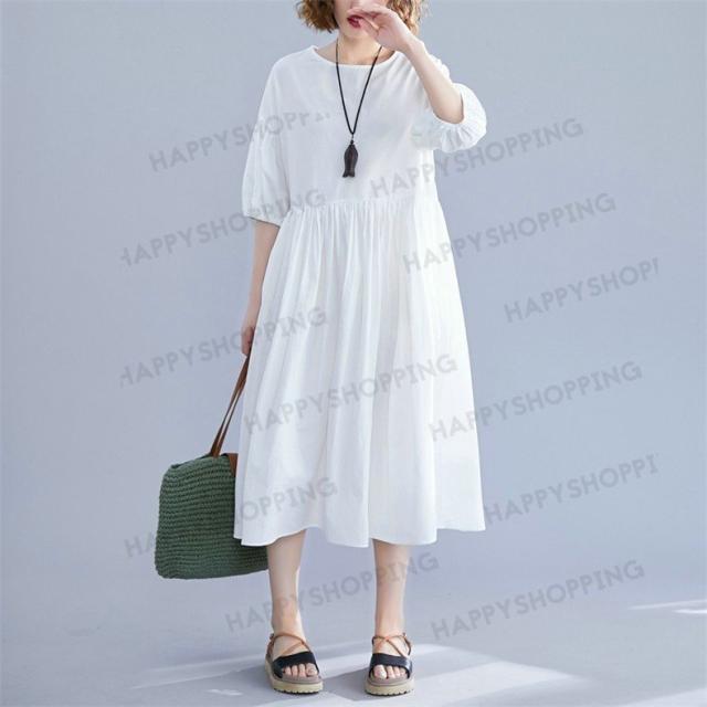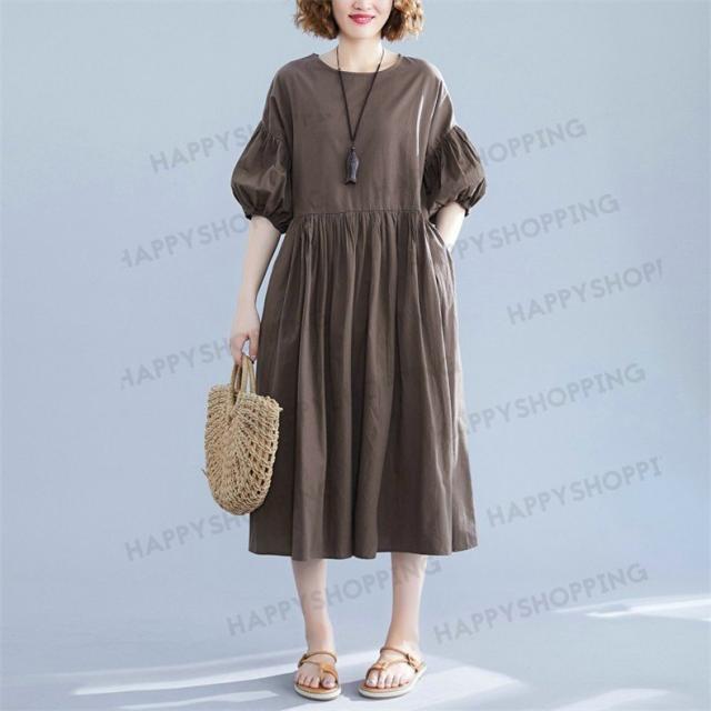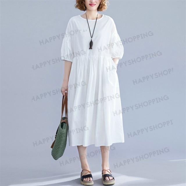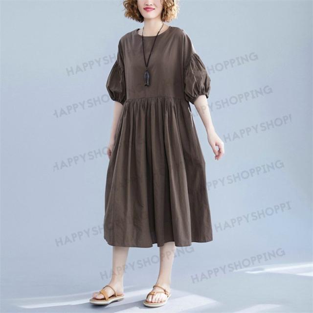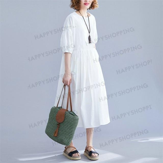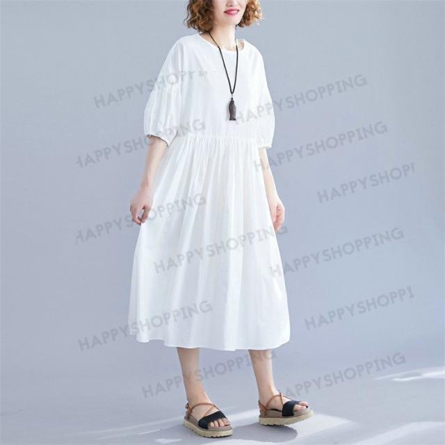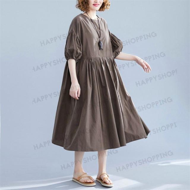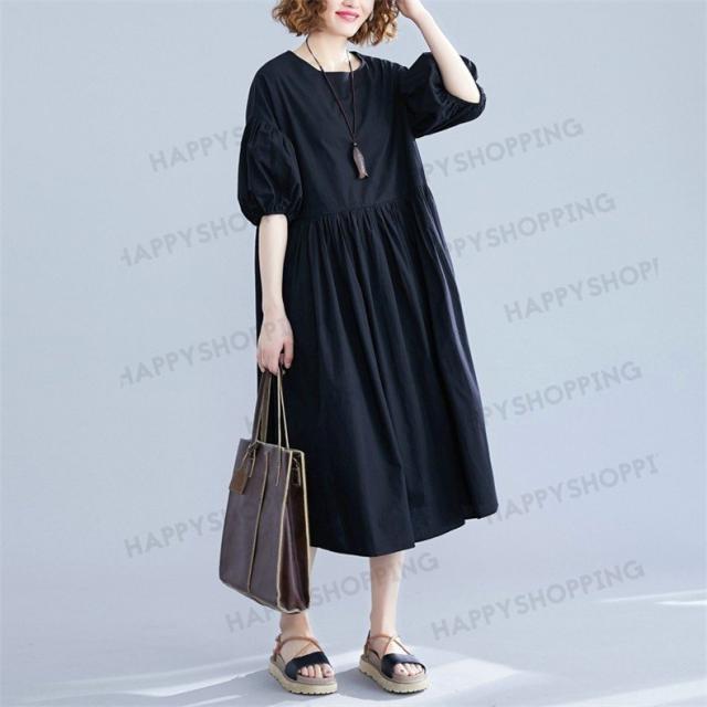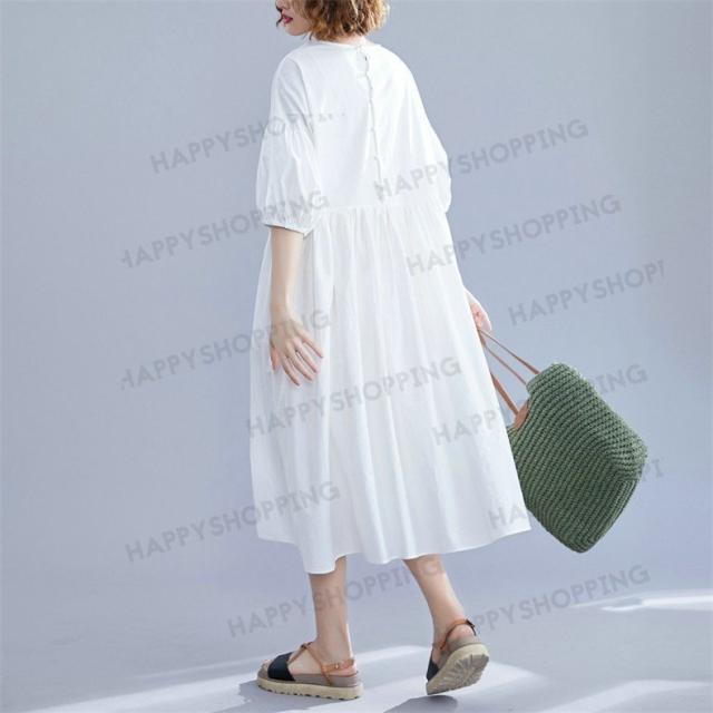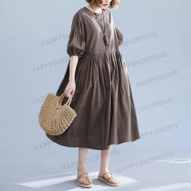 ワンピース ロングワンピース レディース ロング丈 五分袖 無地 体型カバー 大きいサイズ ゆったり 春夏 20代 30代 40代 シンプル