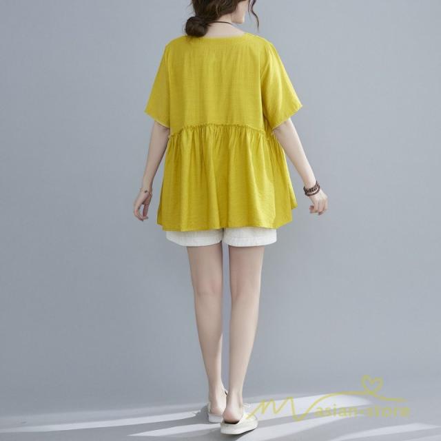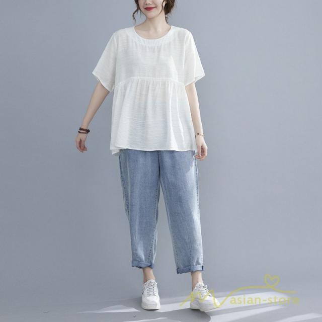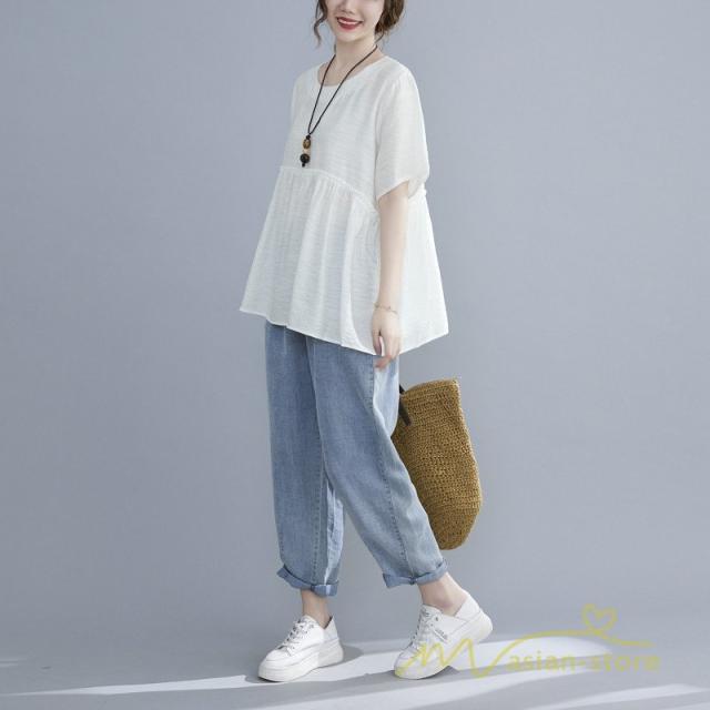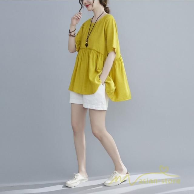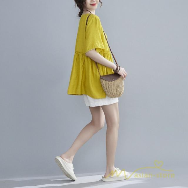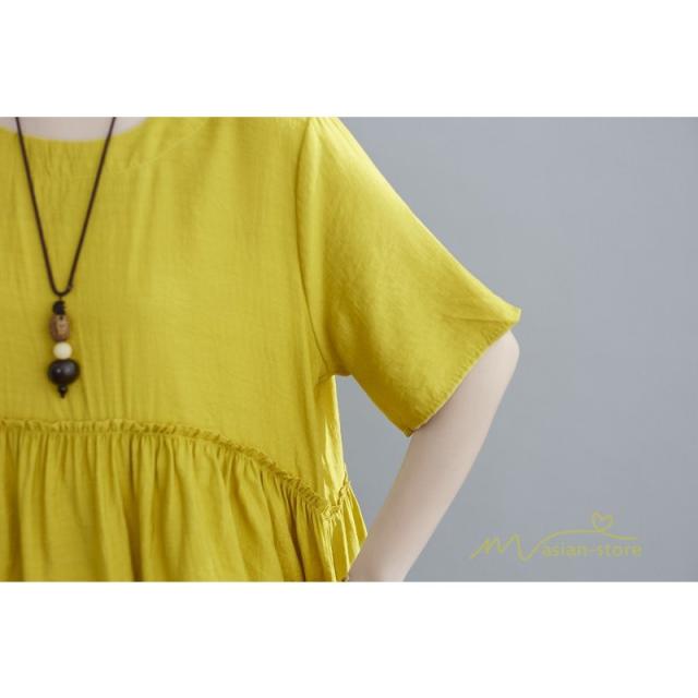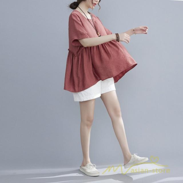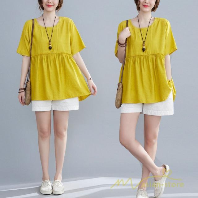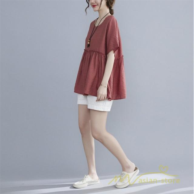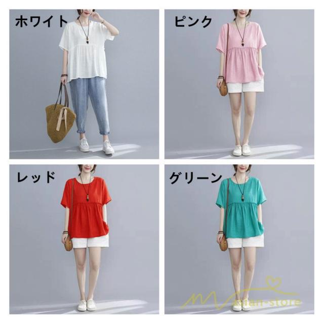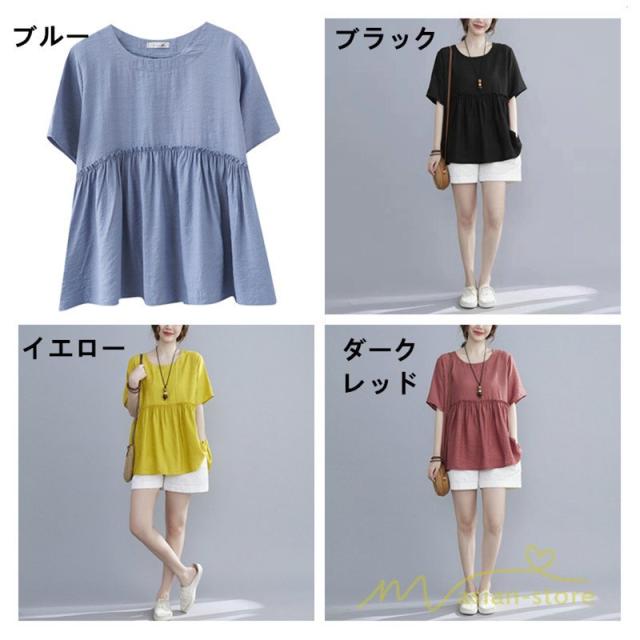 Tシャツ ゆるTシャツ ゆるカットソー 半袖 カットソー レディース Aライン 無地 レディース トップス フレア Tシャツ 半袖 麻風 きれいめ お洒落 ファッション