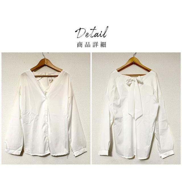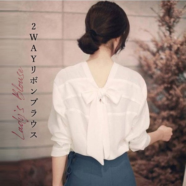 ブラウス シャツ 長袖 レディース レディースブラウス 長袖ブラウス 2way バックリボン Vネック シャツブラウス 大人かわいい カジュアル オシ