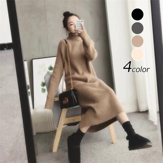 ニットワンピース レディース ハイネック 厚手 秋冬 きれいめ マキシ丈 メリヤス セーター 上品 長袖 ニットワンピース 着痩せ 韓国風30代 40代 50代 通勤新作
