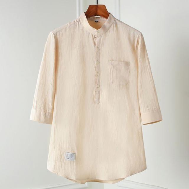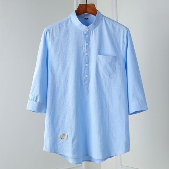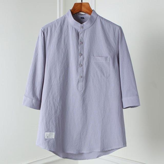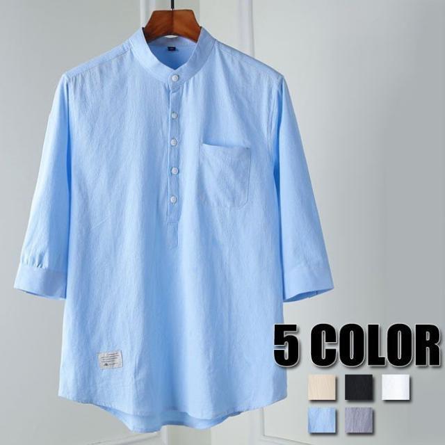 トップス シャツ メンズ 七分袖 シャツ カジュアルシャツ 七分袖シャツ 夏物 春物 ホワイト ブルー ブラック イエロー グレー メンズファッション 3色