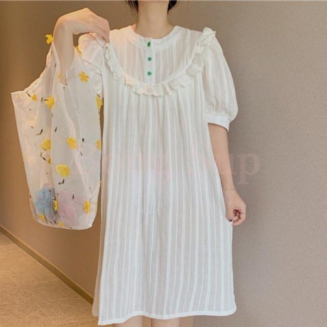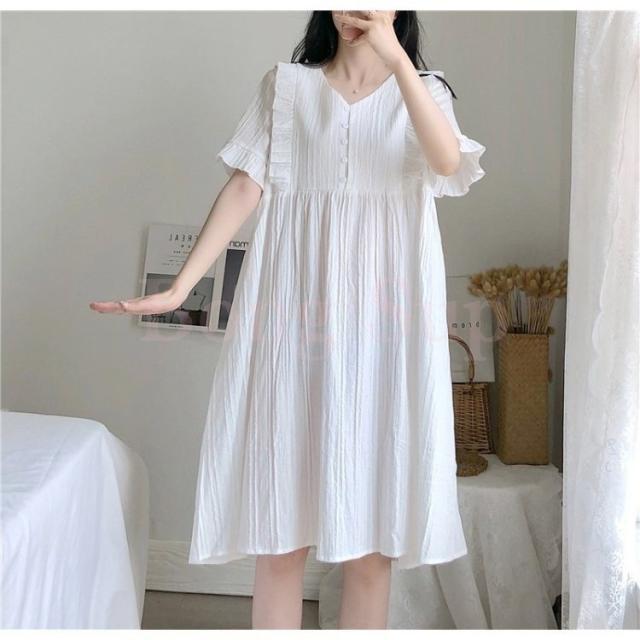 パジャマ レディース ワンピース パジャマ 半袖 夏パジャマ ネグリジェ 無地 綿 大きいサイズ ルームウェア 部屋着 寝巻き マタニティー 妊娠服