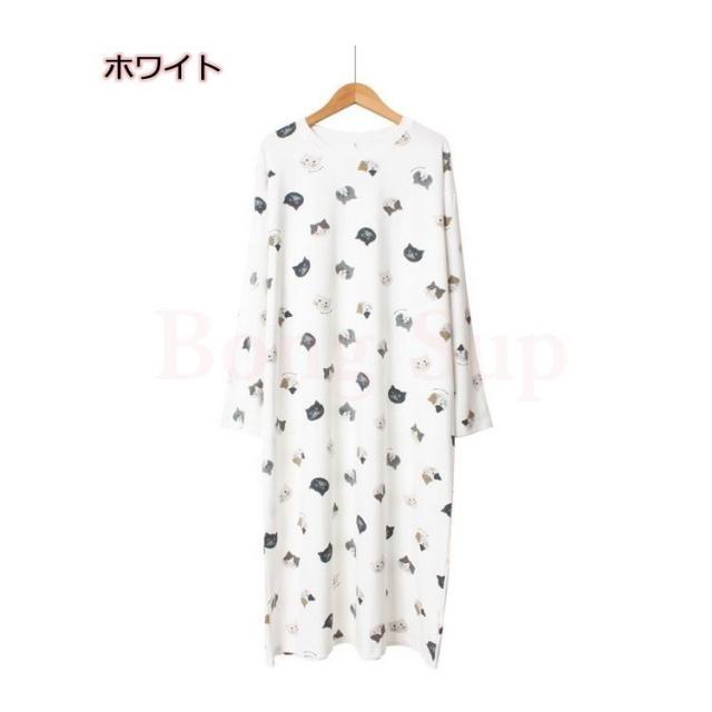 ネグリジェ パジャマ レディース 春夏秋 長袖ワンピース 総柄 うさぎ柄/猫柄ルームウェア 可愛いネグリジェ ロング丈ワンピース ゆったり部屋着 寝巻き ギフト