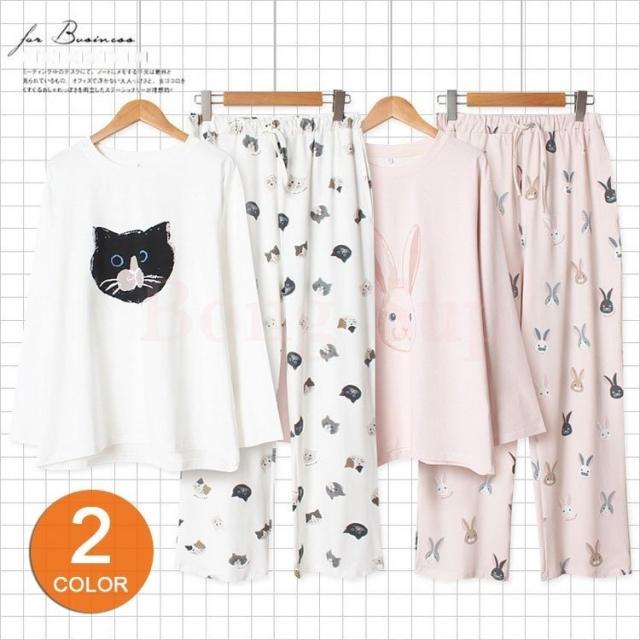 パジャマ ルームウェア レディース 春夏秋 長袖パジャマ 可愛いルームウェア 上下セット 総柄 うさぎ柄/猫柄 韓国風 ゆったり 部屋着 寝巻き オシャレ ギフト