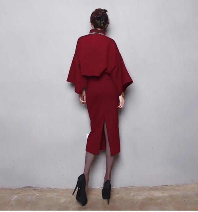 ワンピース セットアップ レディース 40代 秋冬 ラシャスカートセットアップ 膝丈ワンピース きれいめ タイトスカート ベルスリープ 通勤 着痩せ オシャレ