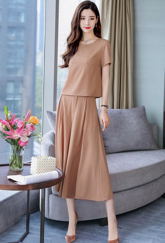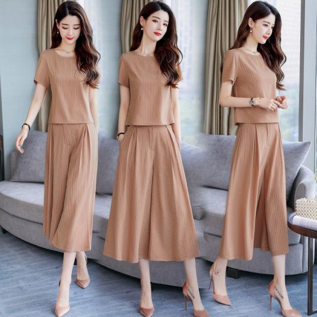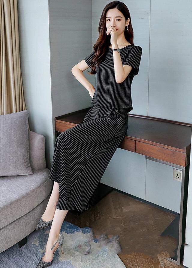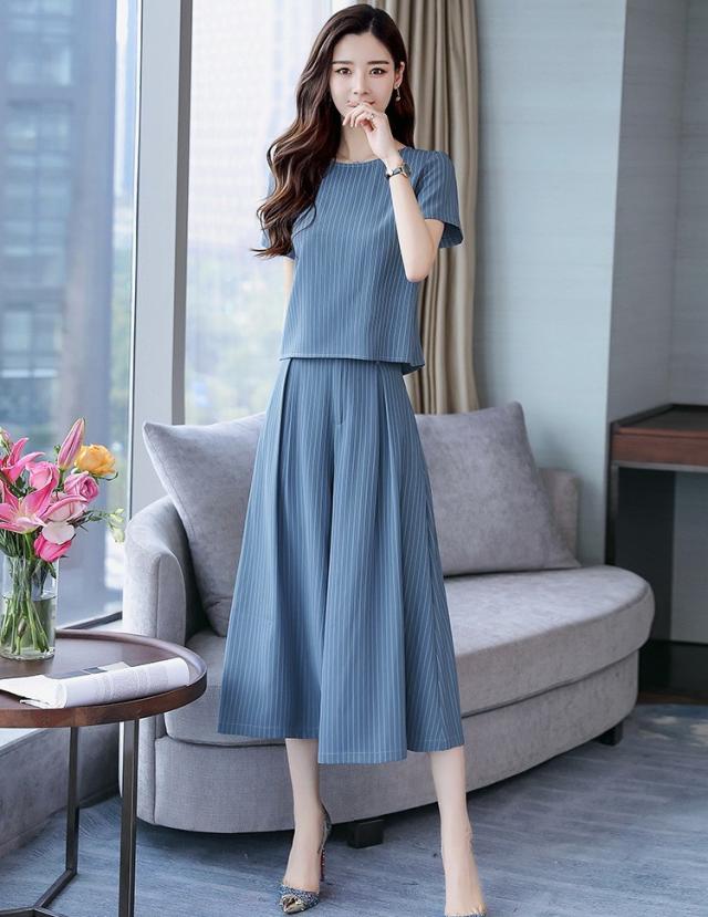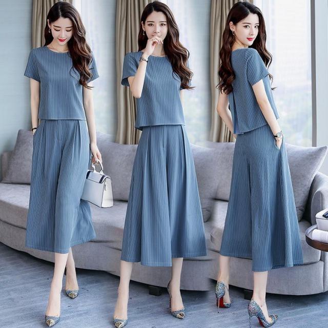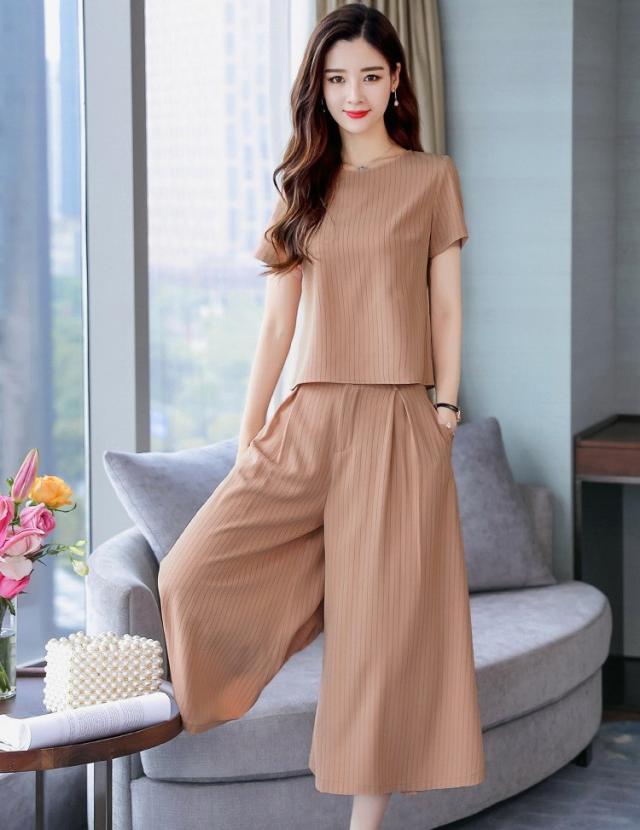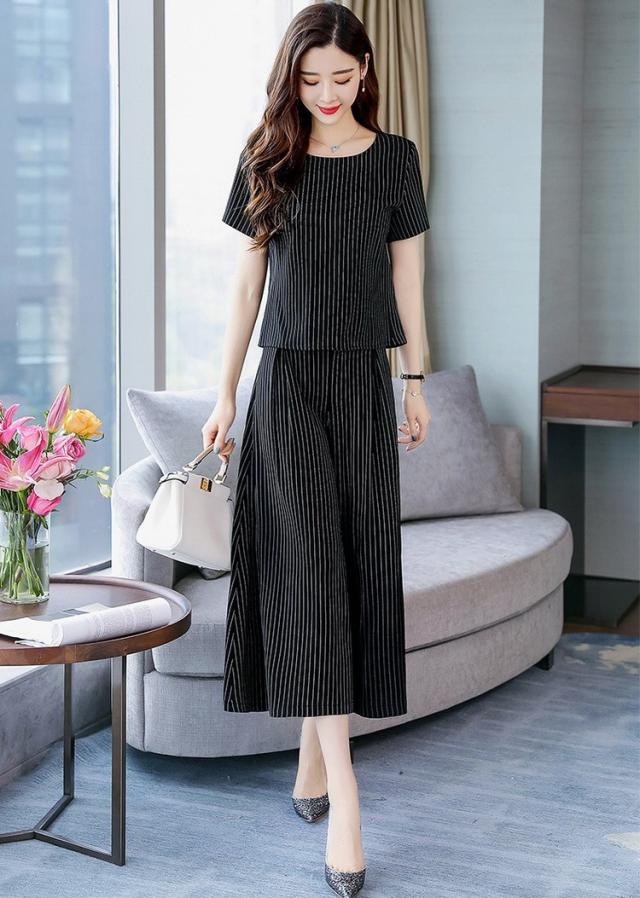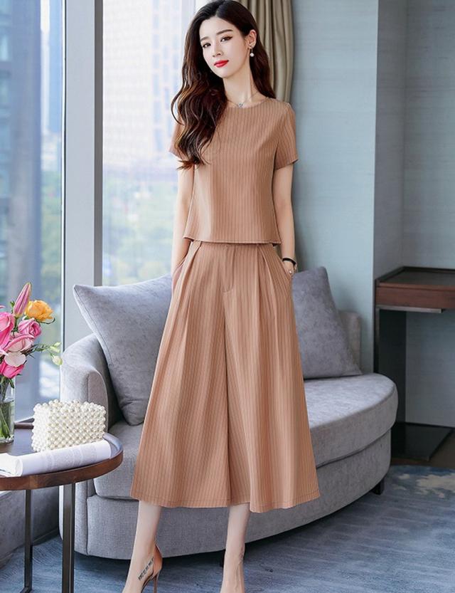 セットアップ レディース きれいめ ズボン 40代 夏 半袖 七分丈パンツ ストライプ 上下セット 韓国風 通勤 OL オシャレ 上品 セットアップ