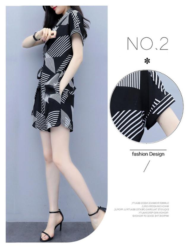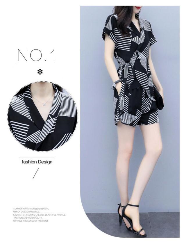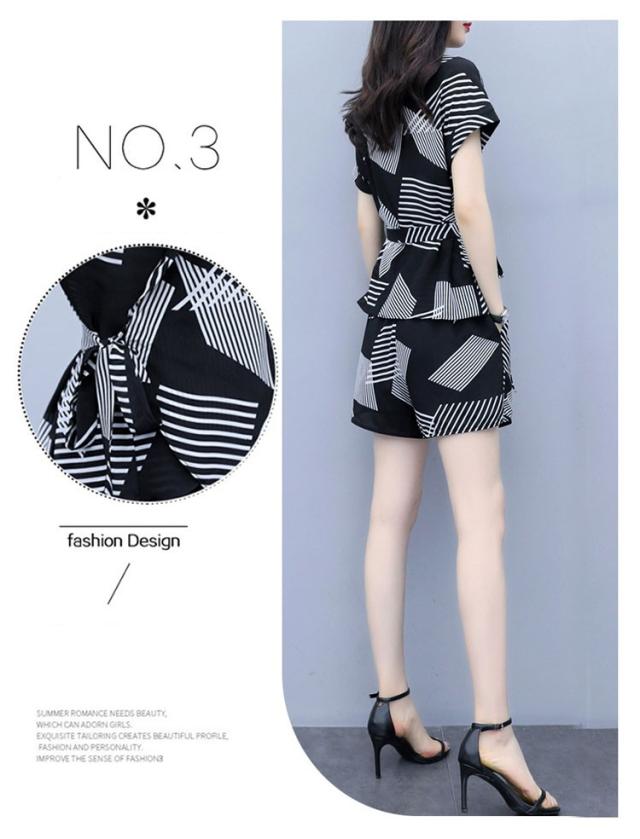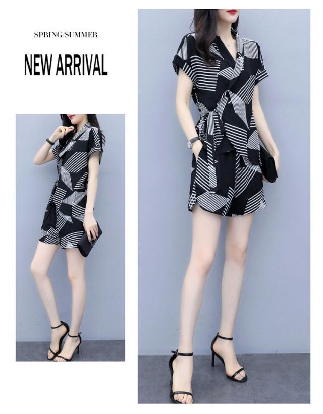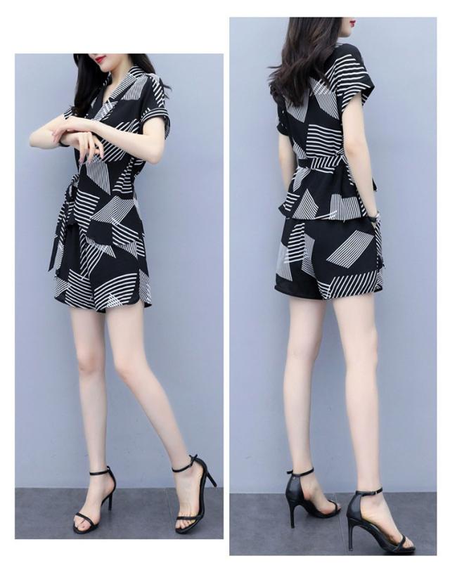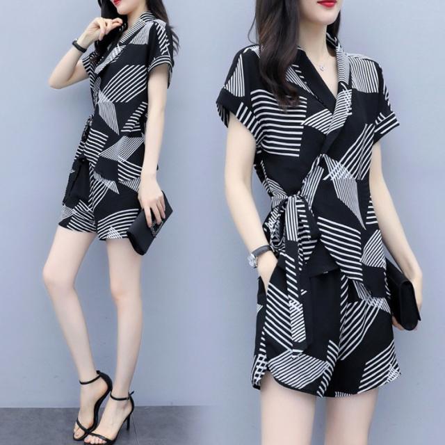 セットアップ レディース 夏 40代 韓国風 半袖 ストライプ ズボン チェック パンツ リボン ゆったり 上下セット オシャレ カジュアル きれいめ