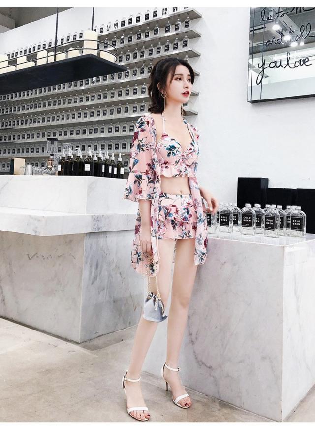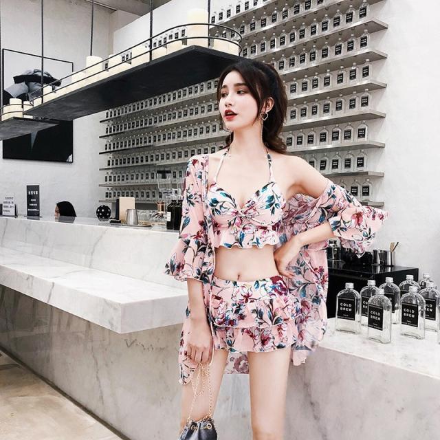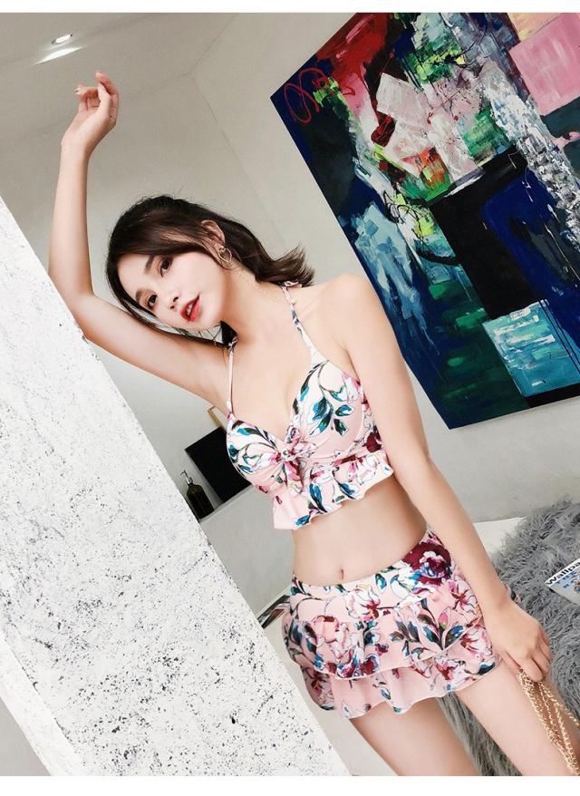水着 レディース ビキニ 3点セット 水着 体型カバー 花柄 小胸 ワンピース フリル 水着 かわいい 可愛い スイムウェア 水着 ワイヤー
