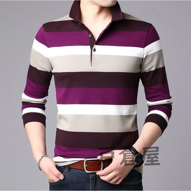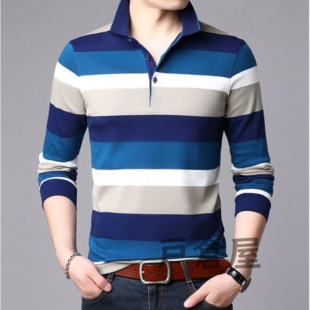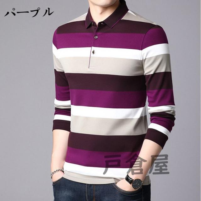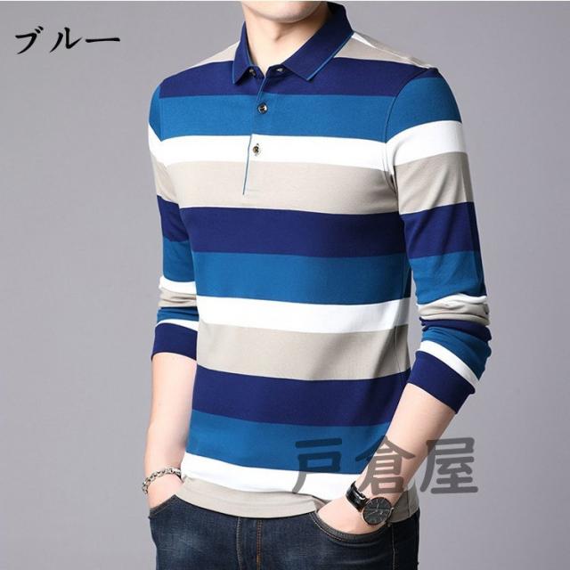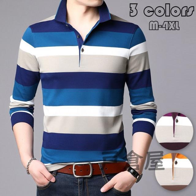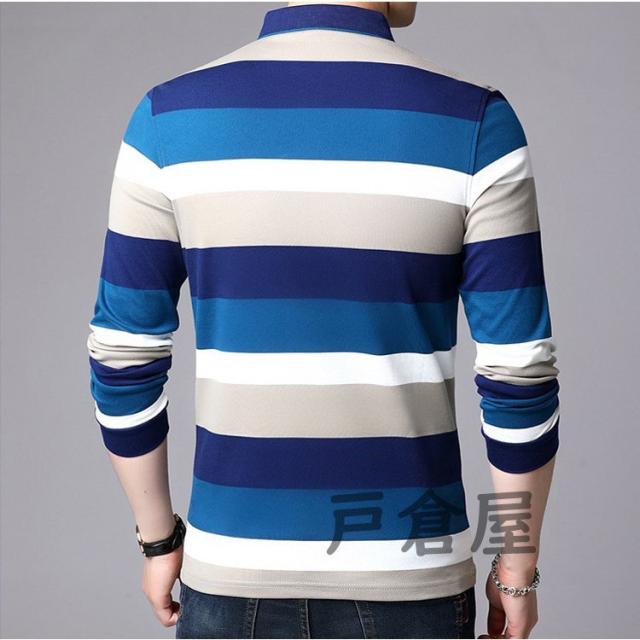 ポロシャツ メンズ トップス 大きいサイズ 長袖 配色切り替え ボーダー柄 トレンド ゴルフウェア おしゃれ スポーツ 秋冬 ゴルフ シャツ 紳士服 カジュアル