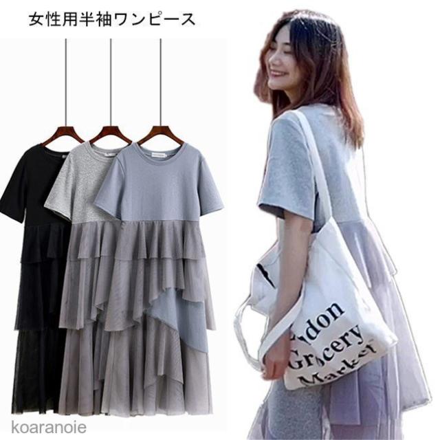ワンピース 半袖 ティアードスカート レディース ロングワンピ チュールスカート 女性用 半袖ワンピース 夏 丸襟 カジュアル お洒落