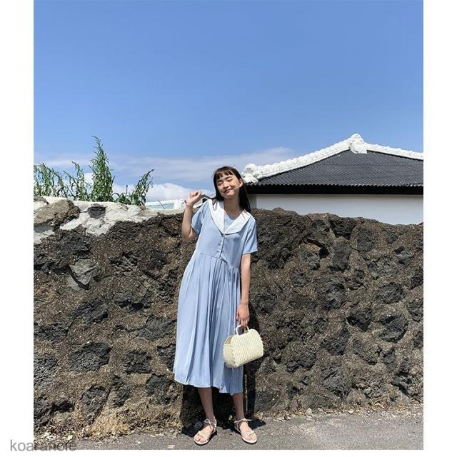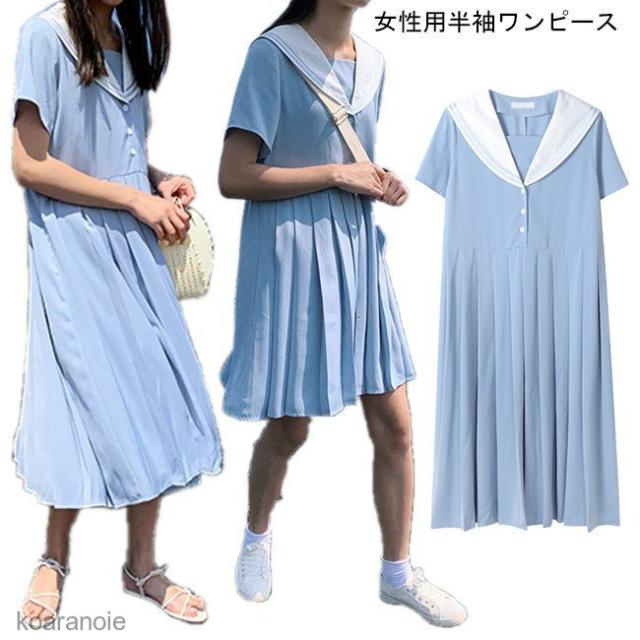 ワンピース 半袖 マリンセーラー レディース 半袖ワンピース 薄手 ロングワンピ ショートワンピ 女性用 チュニック 夏物 レトロ 爽やか