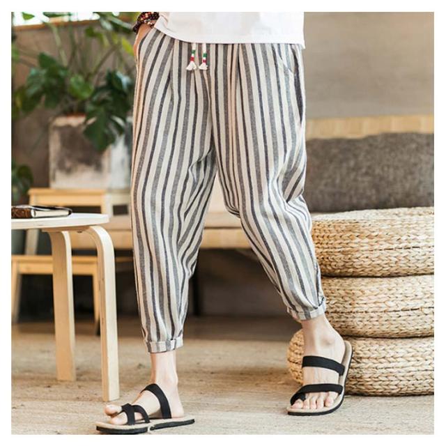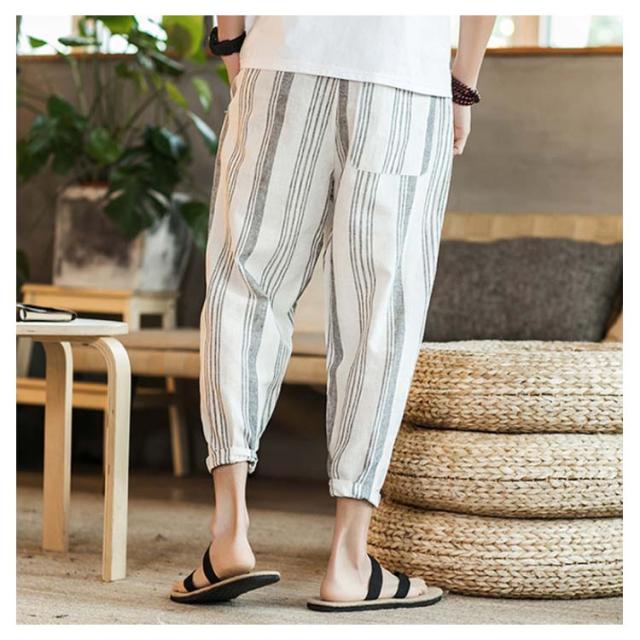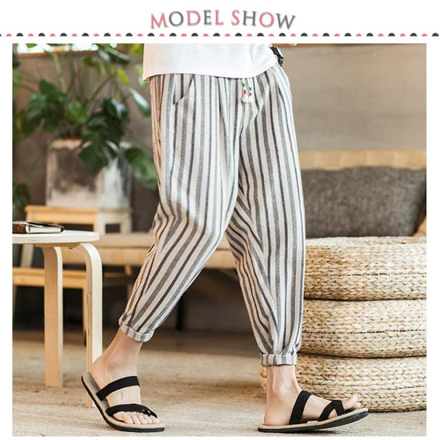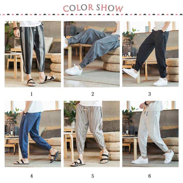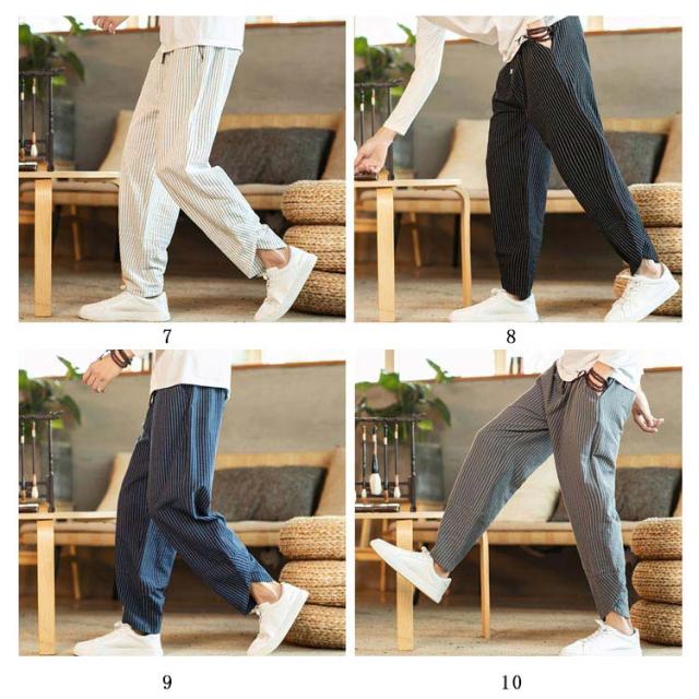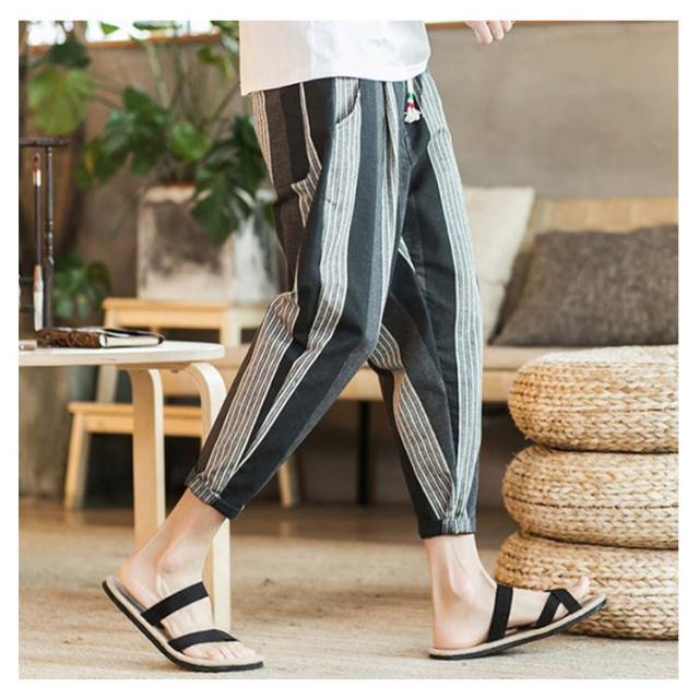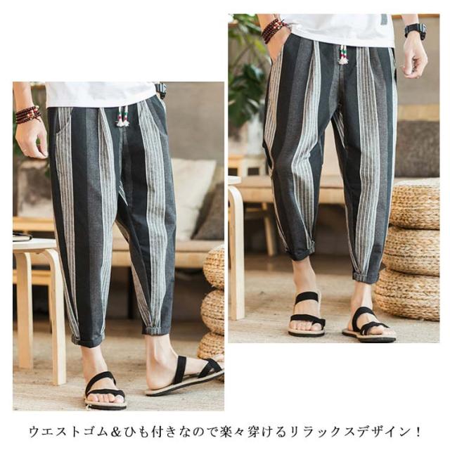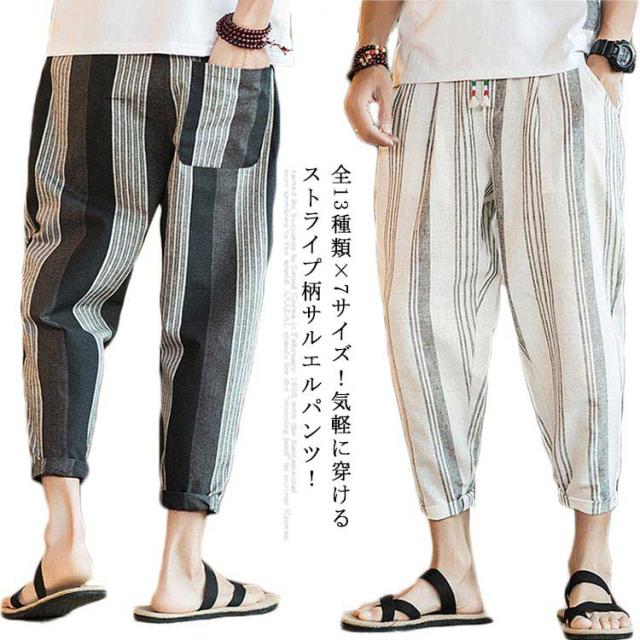 全13種類×7サイズ!サルエルパンツ メンズ 綿麻 パンツ ストライプ柄 リネンパンツ 綿麻パンツ リネン 9分丈パンツ サルエル ワイドパンツ 麻混 春夏 大きサイズ メンズファッション