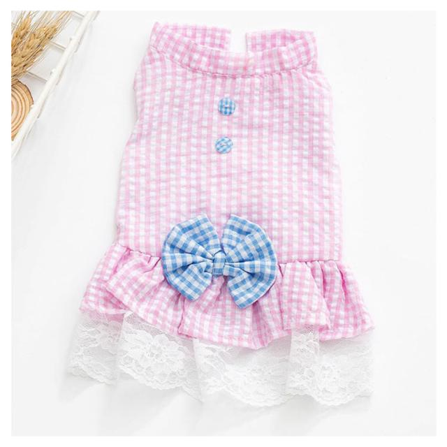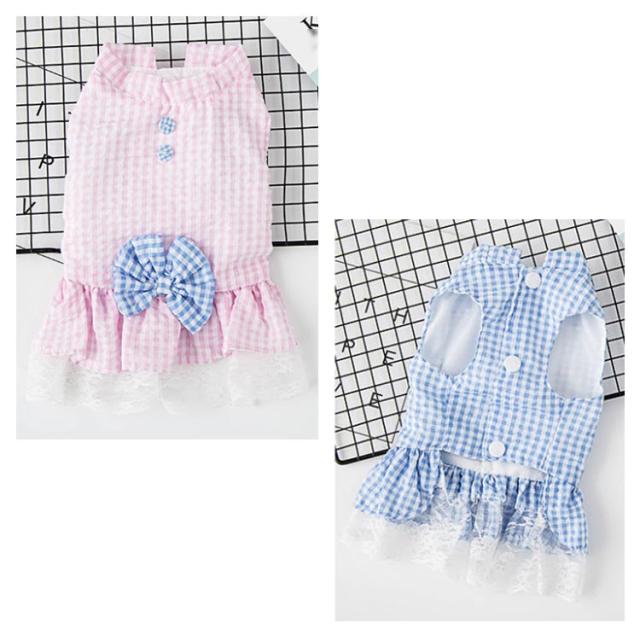 犬 夏服 クール 女の子 チェック柄 ワンピース スカート 送料無料 犬服 春夏 可愛い セール ドッグウエア ペットウエア フリフリスカート ドレス フリル 春服 夏服 犬の服 XS S M L オフホワイト ダークグレー